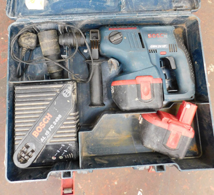'Cased Bosch GBH 24-VF hammer drill, charger and spare battery - unchecked'