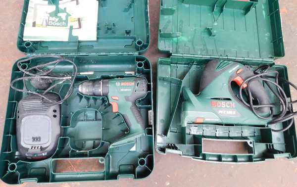 'Bosch PFZ 500-E 240V in case and cased Bosch battery drill - no battery'