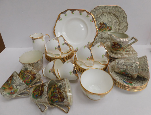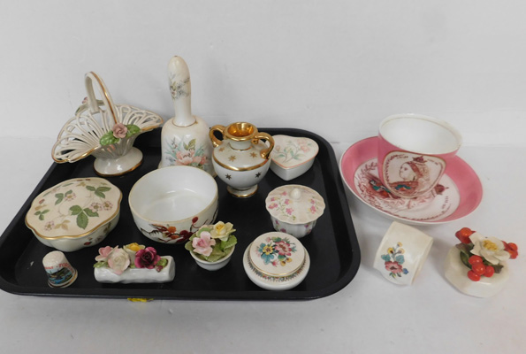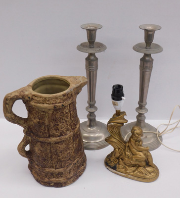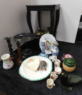 'Mixed lot - incl. oriental style side table, candlesticks, Nao figurine and crested ware'