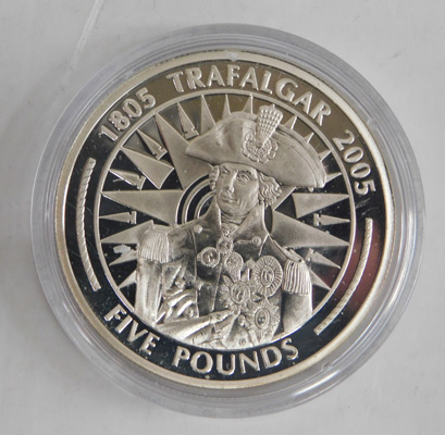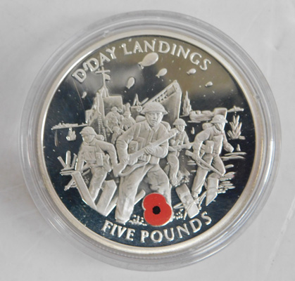 'Gibraltar silver proof £5 coin with poppy/D-Day landings - dated 2004'