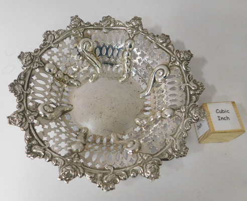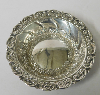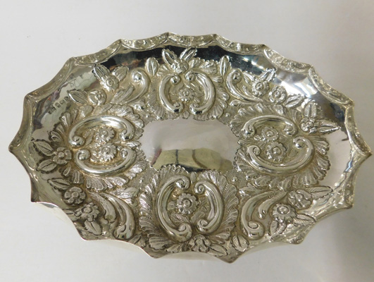 'Sterling silver oval floral scroll shallow dish - Birmingham 1902 - 335g/ 10 x 8"'