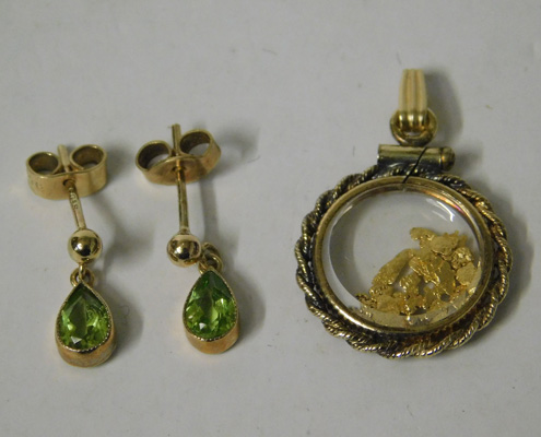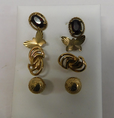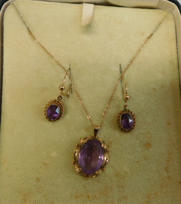 '9ct Gold vintage amethyst chain and pendant with matching earrings - 4.6g'