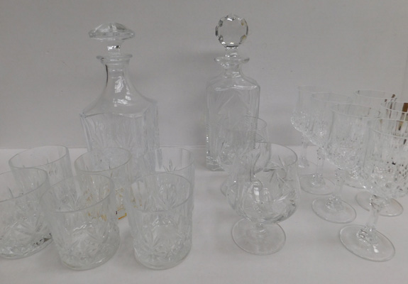 'Two crystal cut decanters and glasses - incl. American crystal'