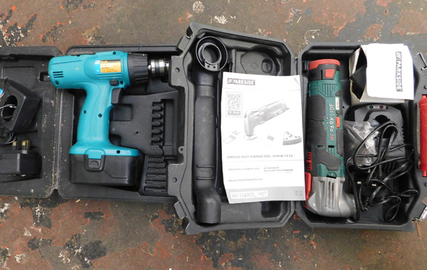 'Parkside 240V multi-purpose tool and DP tools battery drill - both cased/ unchecked'