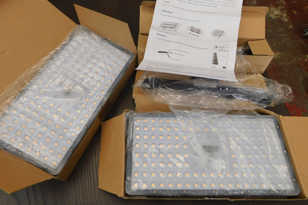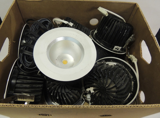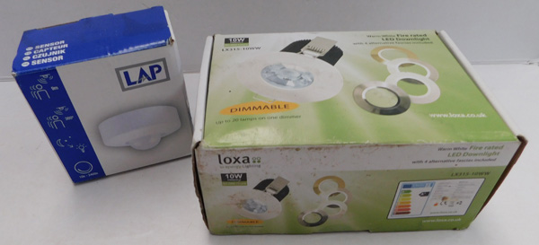 'Boxed fire rated LED downlight and boxed LAP sensor'