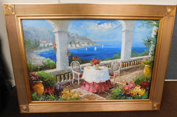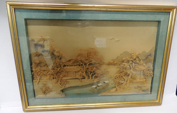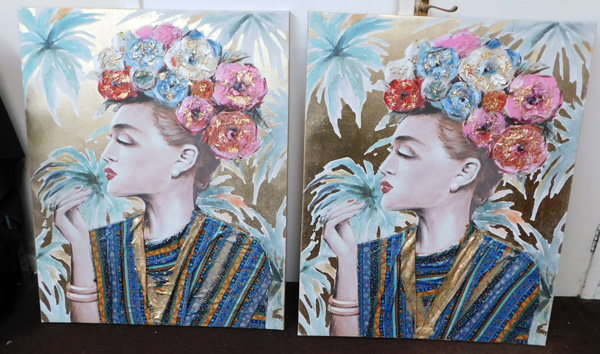'Two large contemporary fabric and canvas paintings 3D - approx. 32" x 39"'