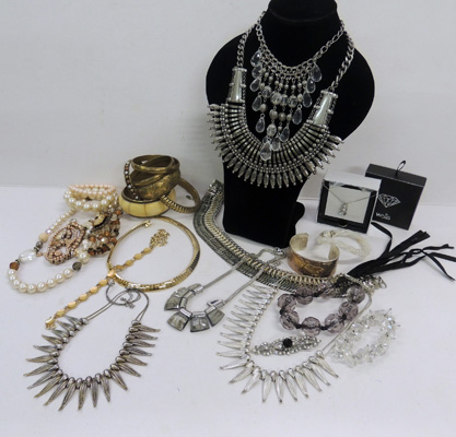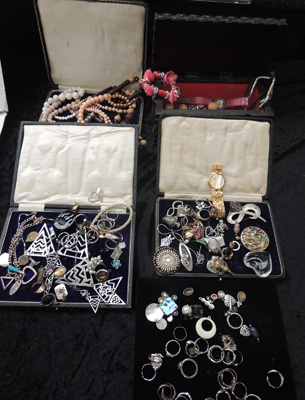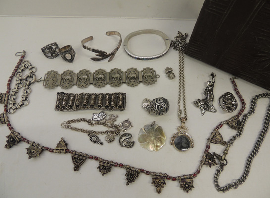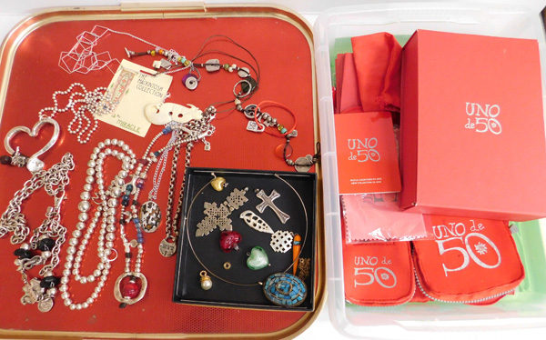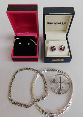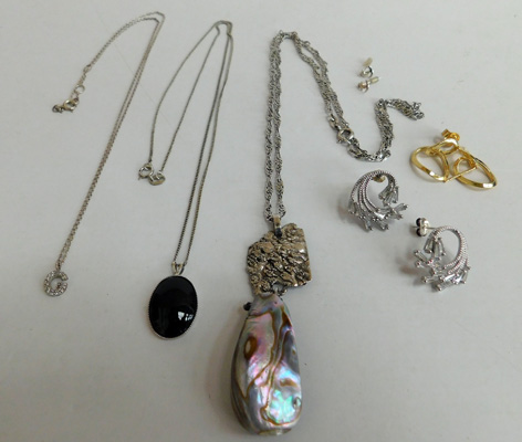 'Silver jewellery collection - incl. three necklace pendants, two pairs of earrings and one silver tone'