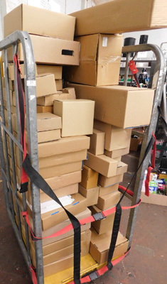 'Large collection of clean (pre-used) strong mailing/postage boxes (cage not included)'