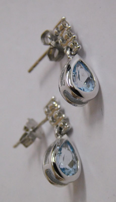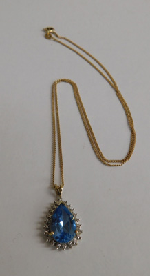 '9ct Gold 18" chain with blue topaz and diamond pendant - 4.4g'