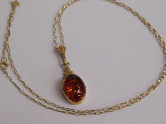 '9ct 18" Gold chain with 9ct amber pendant - 2.1g'