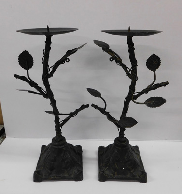 'Naturalistic - metal candle sticks - approx. 11" tall'