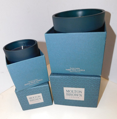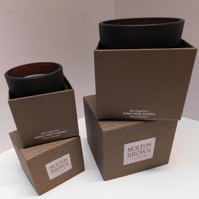 'Two new and boxed Molton Brown candles three wick and one wick - Black Peppercorn'