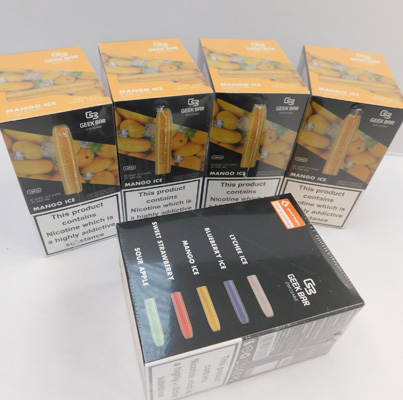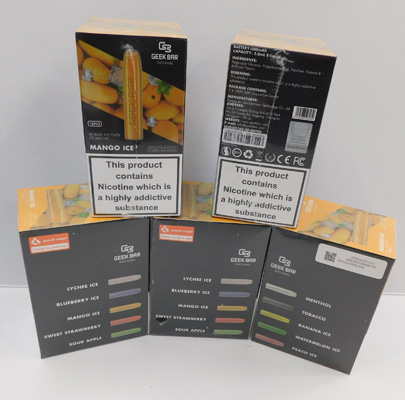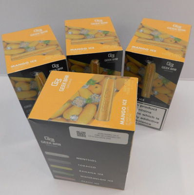 'Four boxes of Geek disposable bars - each box has 10 individual Geek bars inside - Mango Ice flavour'