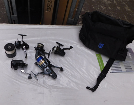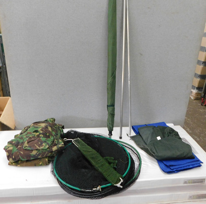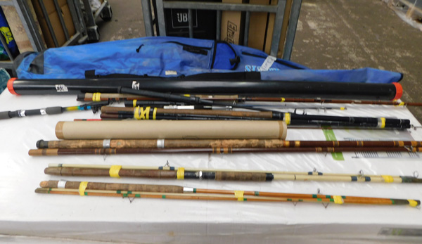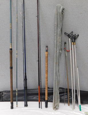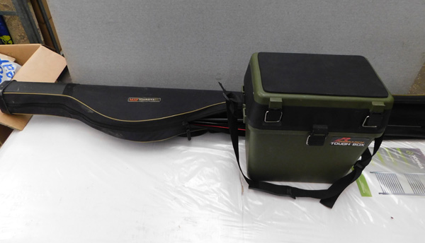 'Small fishing seat/tackle box and selection of rods, poles and holdall'