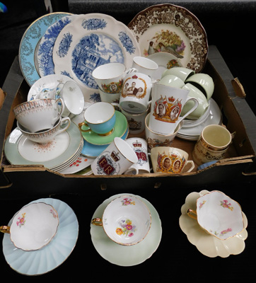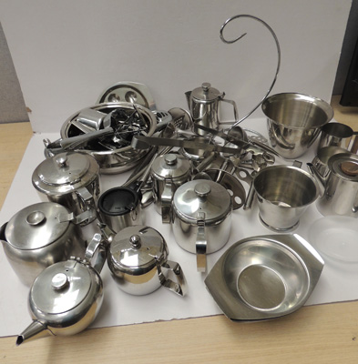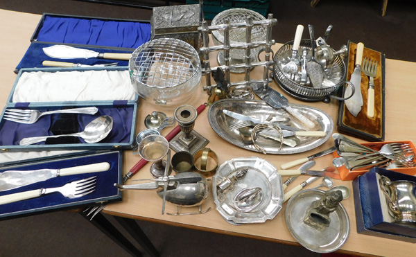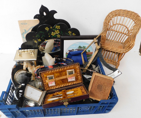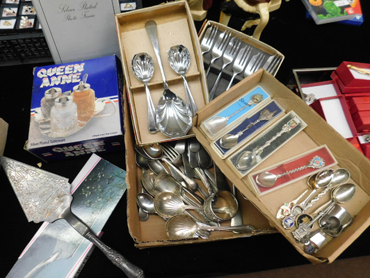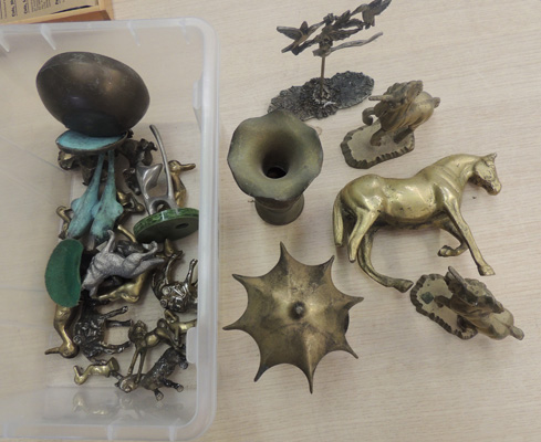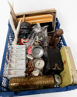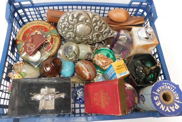 'Box of fittings, screw hooks, Jubilee cups and tools'