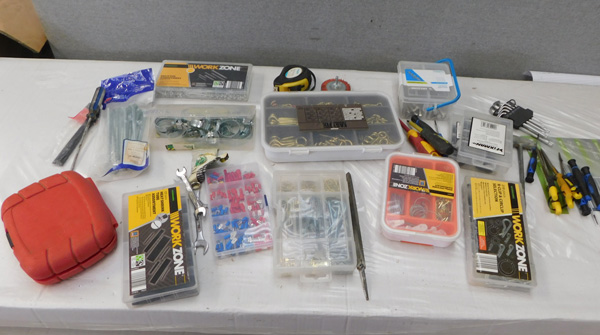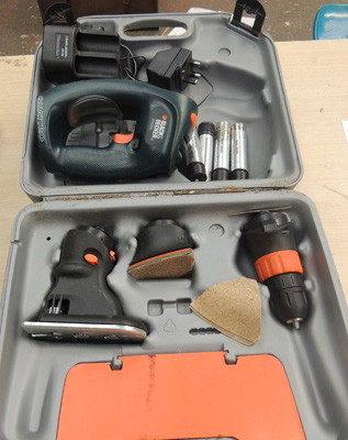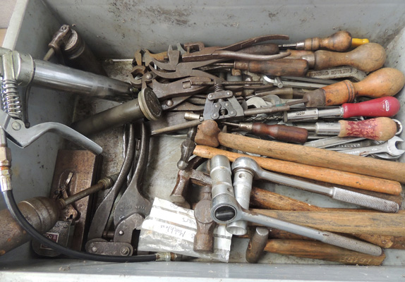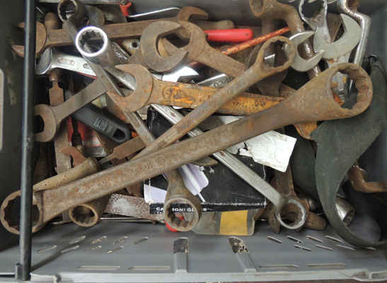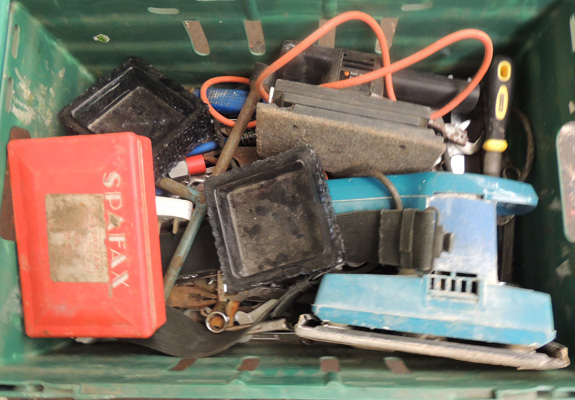 'Tray of tools - incl. spanners and electric sanders - unchecked'