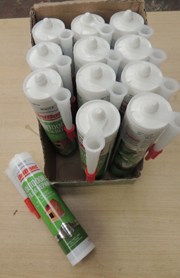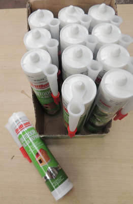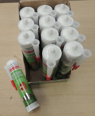 'Box of 12 Unibond tubes of outdoor fill and repair - 389g (exp 07/2022)'