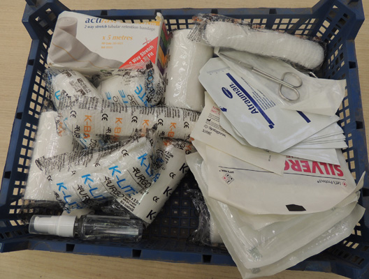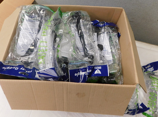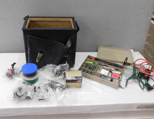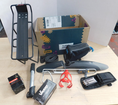 'Box of bike accessories - incl. innertubes, bottle holders, pannier rack, tool kit, mud guard etc.'