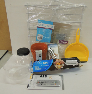 'Eight new household items - incl. drier, fellow jar and universal remote.'