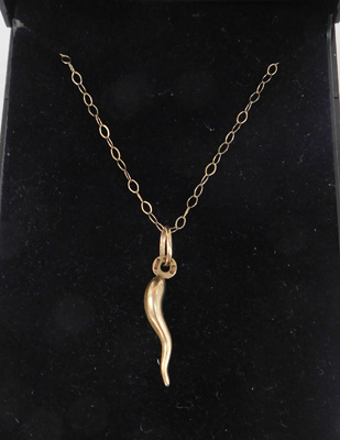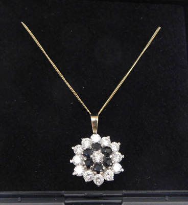 '9ct Gold belcher chain with 9ct white and yellow gold drop pendant - 3.2g'