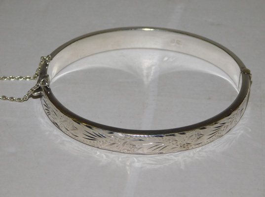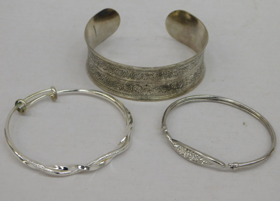 'Oriental silver marked bangle, 925 silver bangle and bangle marked 999'