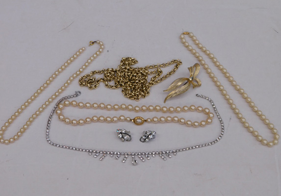 'Two sets of pearls, one with 9ct gold clasp and costume jewellery'