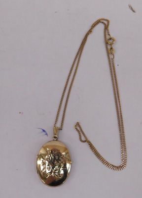'9ct Gold chain with large opening locket with patterned front - 4.9g'