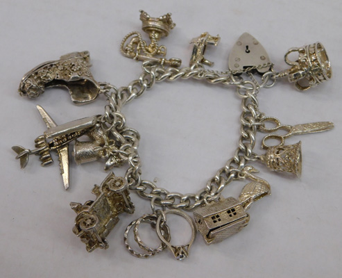 'Georg Jensen silver charm bracelet - signed on locket and links'