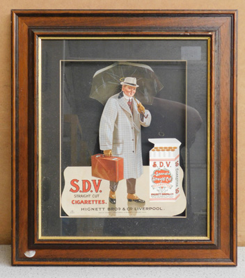 '1930s/40s SDV Straight cut cigarettes 3D framed advert - approx. 14 1/2" x 16 1/2"'