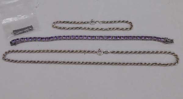 'Silver amethyst bracelet and silver rope chain and bracelet'